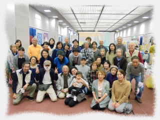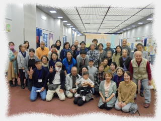 ![]() 友労染展「染住民の祭り」40回展参加の面々! コロナ禍の中での開催で様々な制約がありましたが、老いも若きも大いに楽しむことが出来ました。ありがとうございました。 |